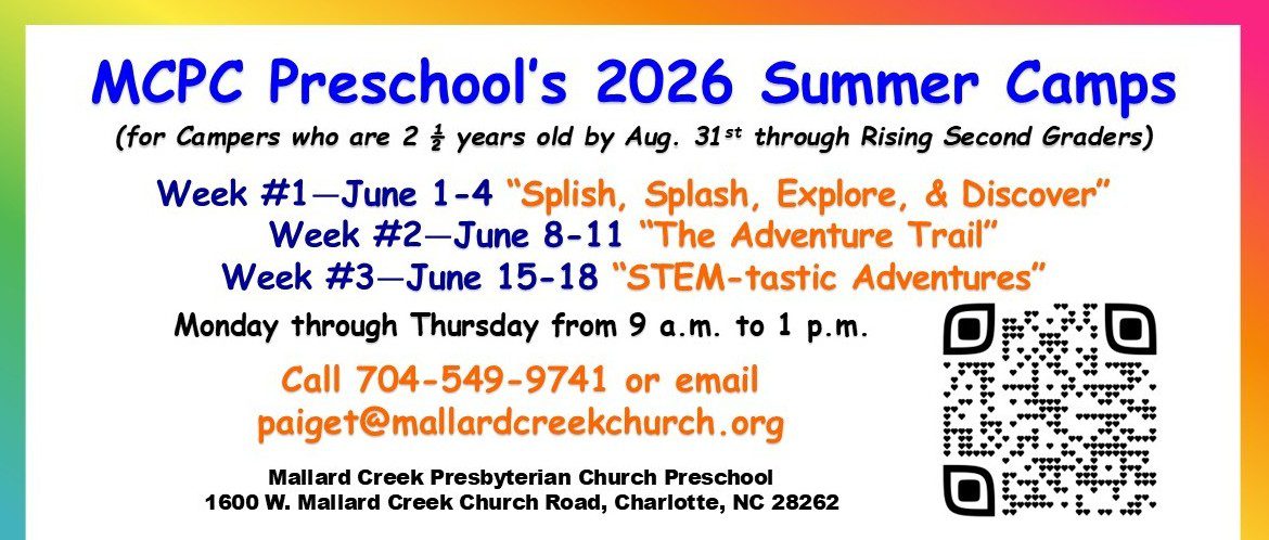From the moment you arrive at Mallard Creek Presbyterian Church, you’ll be greeted and welcomed by a congregation eager to make you feel part of a cohesive community. Whether it's Sunday Morning or throughout the week, we are here to serve our members and community.