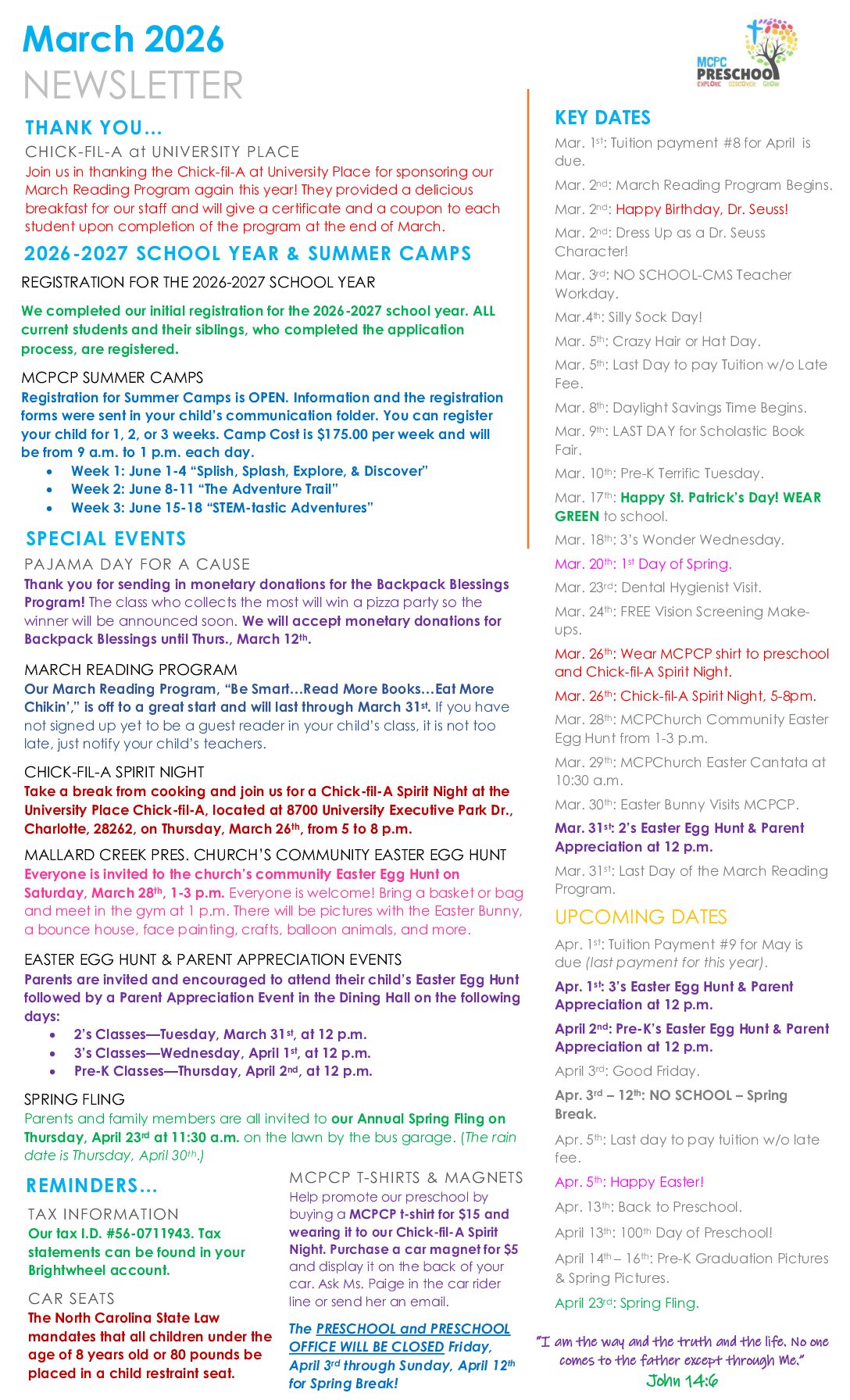 PreSchool Newsletter Mallard Creek PreSchool Newsletter March 2026 Preschool Newsletter March 2026 February 2026 Preschool Newsletter February 2026 January 2026 Preschool Newsletter January 2026 November 2025 Preschool Newsletter November 2025
